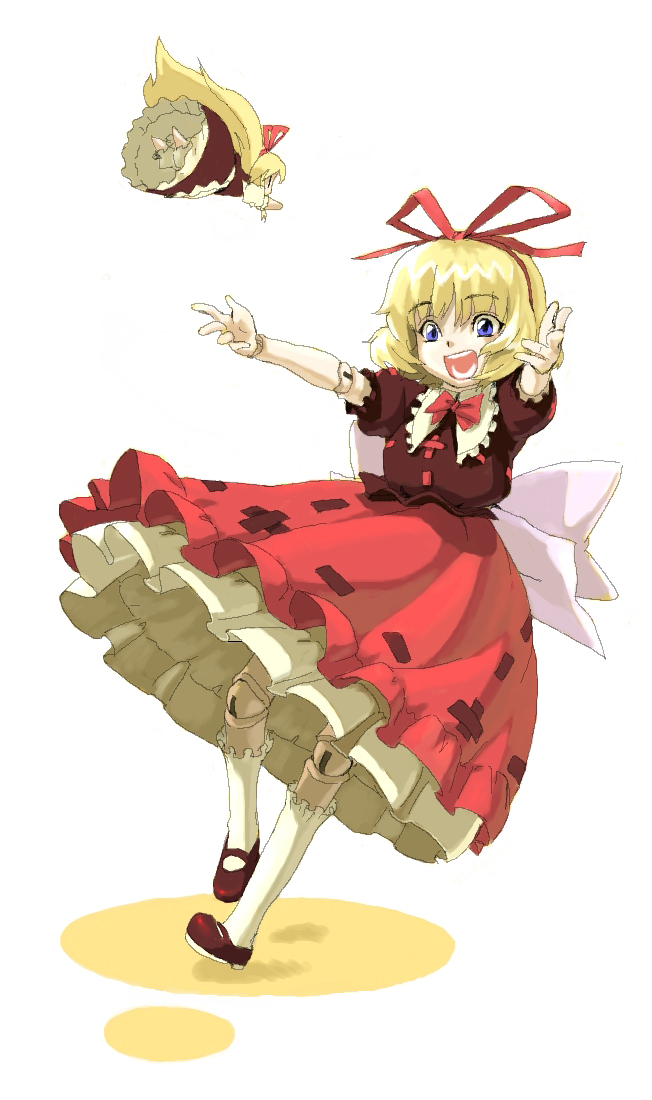 1girlblonde hairblue eyesdolldoll jointsfemale focusjointslong hairribbonshort hairsimple backgroundsolowhite background