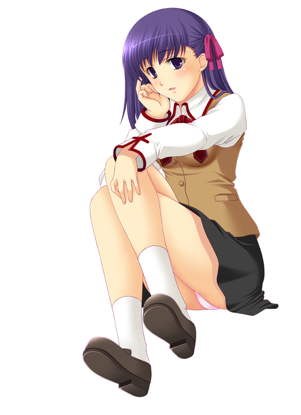 00sblushcrossed legshomurabara academy school uniformlong hairpantiespantyshotpurple eyespurple hairschool uniformshoessittingsockssolounderwearwhite panties
