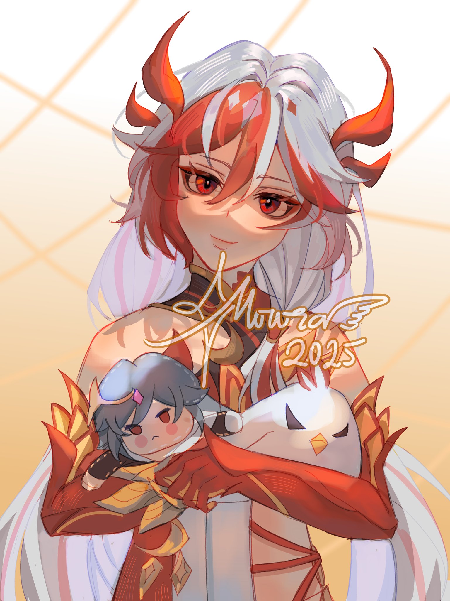 1girlcharacter dolldolllong hairmulticolored hairred eyesred hairred scalesscalessignaturewhite hair