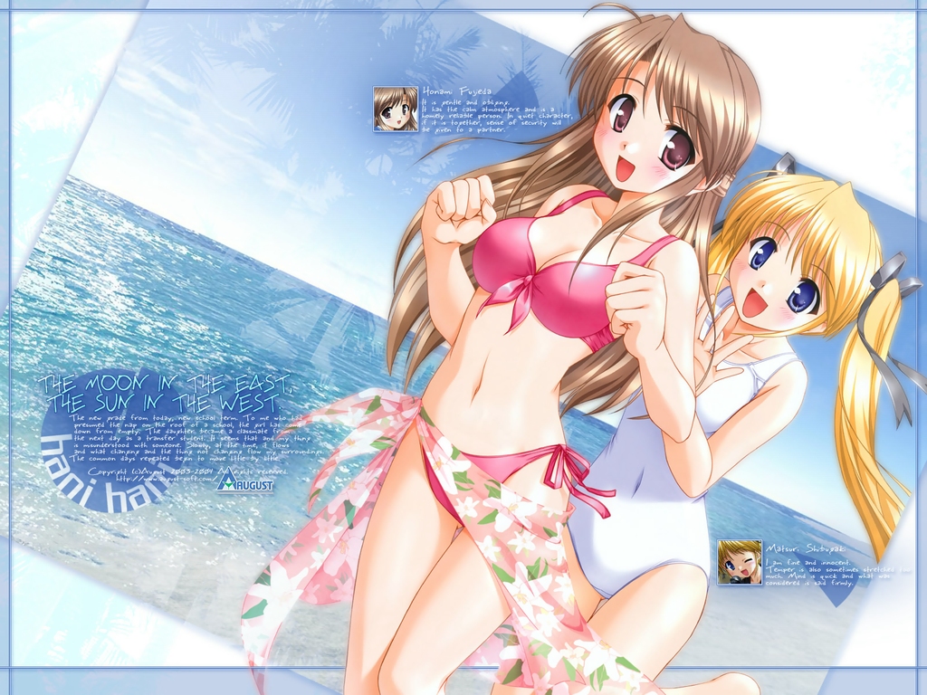 00s2girlsbikiniblonde hairblue eyesblushbreastsbrown eyesbrown haircleavagecovered navelfront-tie toplarge breastslong hairlooking at viewermedium breastsmultiple girlsnaveloceanopen mouthpink sarongsarongside-tie bikini bottomsmileswimsuitthigh gaptwintails