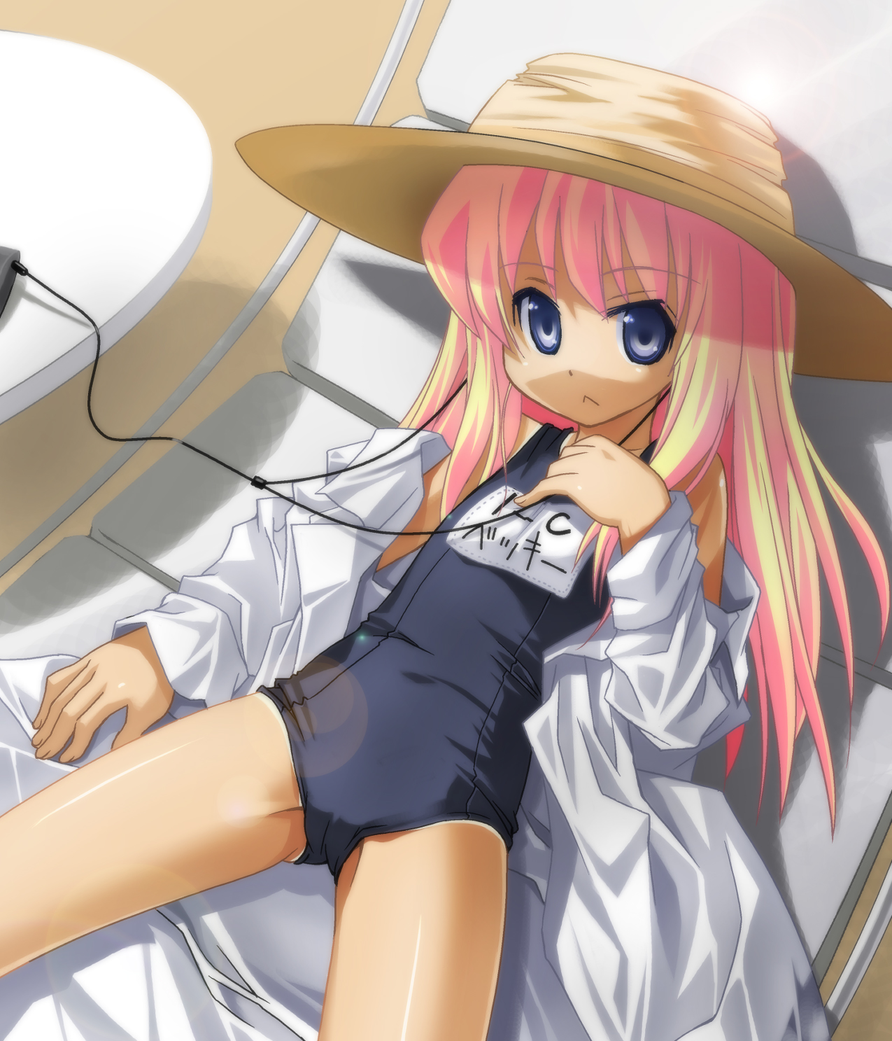 00s1boy1girlblonde hairblue eyeschairchildfemale focusflat chesthatlab coatlens flarelounge chairno pantsone-piece swimsuitone-piece tanopen clothesschool swimsuitsolosun hatswimsuitswimsuit under clothestantanline