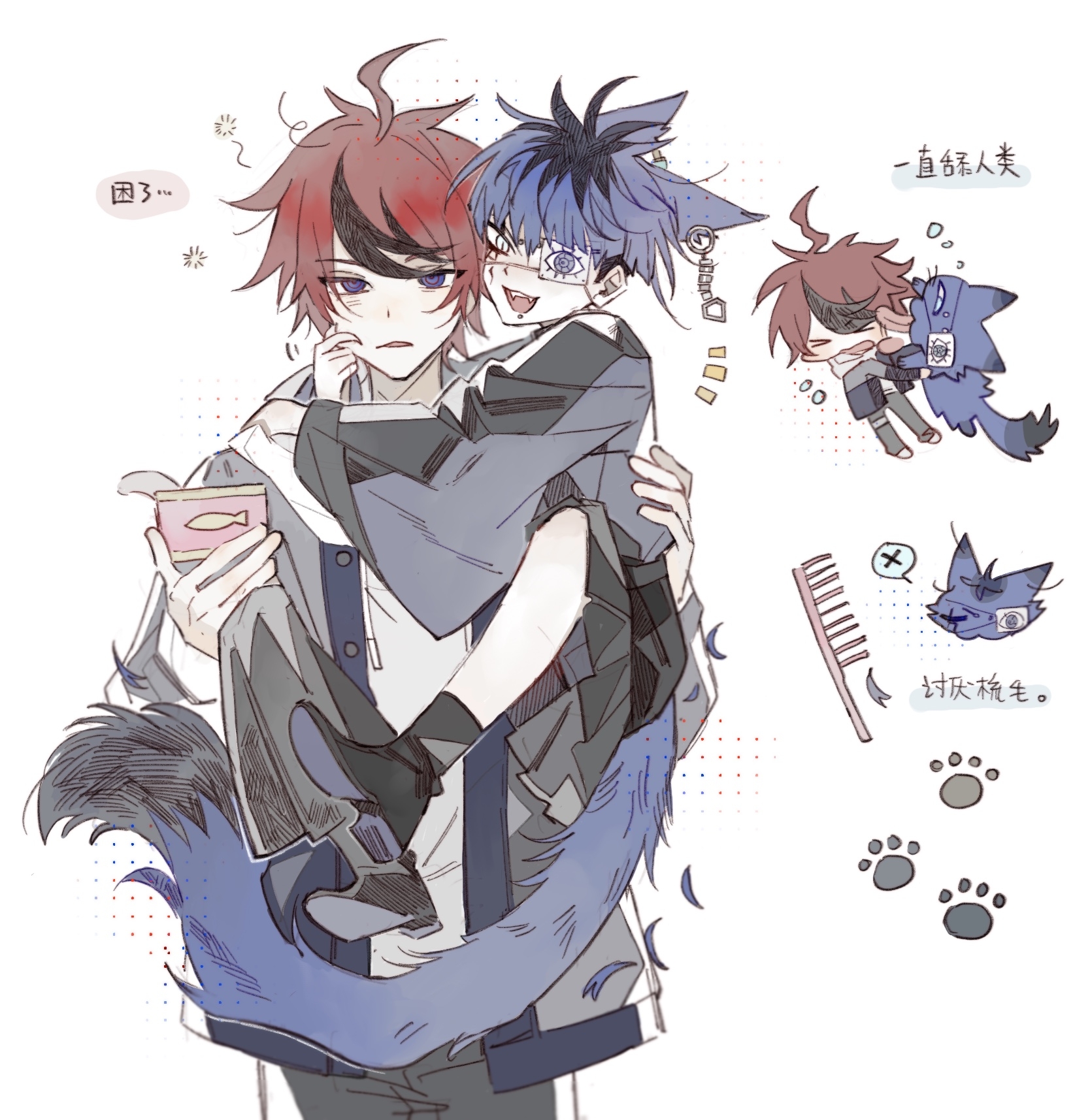 1boy2boysaged downahogeanimal ear piercinganimal earsanimalizationblack bootsblack hairblack hakamablack kimonoblack pantsblue eyesblue hairblue jacketbootscancarryingcarrying personcatcat boycat earscat tailcheek pinchingchibichin piercingchinese textcombdrawstringextra earseyepatchface piercingfacepaintgrey jackethakamaholdingholding canhoodhood downhoodiejacketjacket over hoodiejapanese clotheskemonomimi modekimonolickinglong sleevesmale focusmulticolored hairmulticolored jacketmultiple boysmultiple viewsnotice linesopen clothesopen jacketpantspaw printpet foodpiercingpinchingprint eyepatchred hairroots (hair)shoesshort hairslit pupilsspeech bubblestreaked hairtailthigh straptwo-tone hairtwo-tone jacketwhite backgroundwhite eyeswhite hoodiewhite shoeswide sleeves