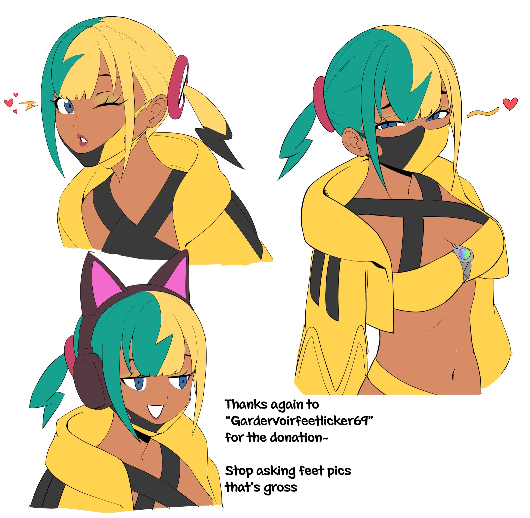 1girlanimal ear headphonesanimal earsaqua hairbandeaublack maskblonde hairbreastscat ear headphonescat earscleavagecriss-cross haltercrop topcurly sidelocksenglish textfake animal earsfake hair bunhalterneckheadphonesheartjacketlarge breastsmaskmask pullmega ringmega stonemidriffmouth maskmulticolored hairnavelone eye closedshort twintailssimple backgroundsolosplit-color hairstomachstraplessstreamerstube toptwintailstwo-tone hairtwo-tone maskwhite backgroundyellow bandeauyellow jacketyellow maskyellow tube topzipper