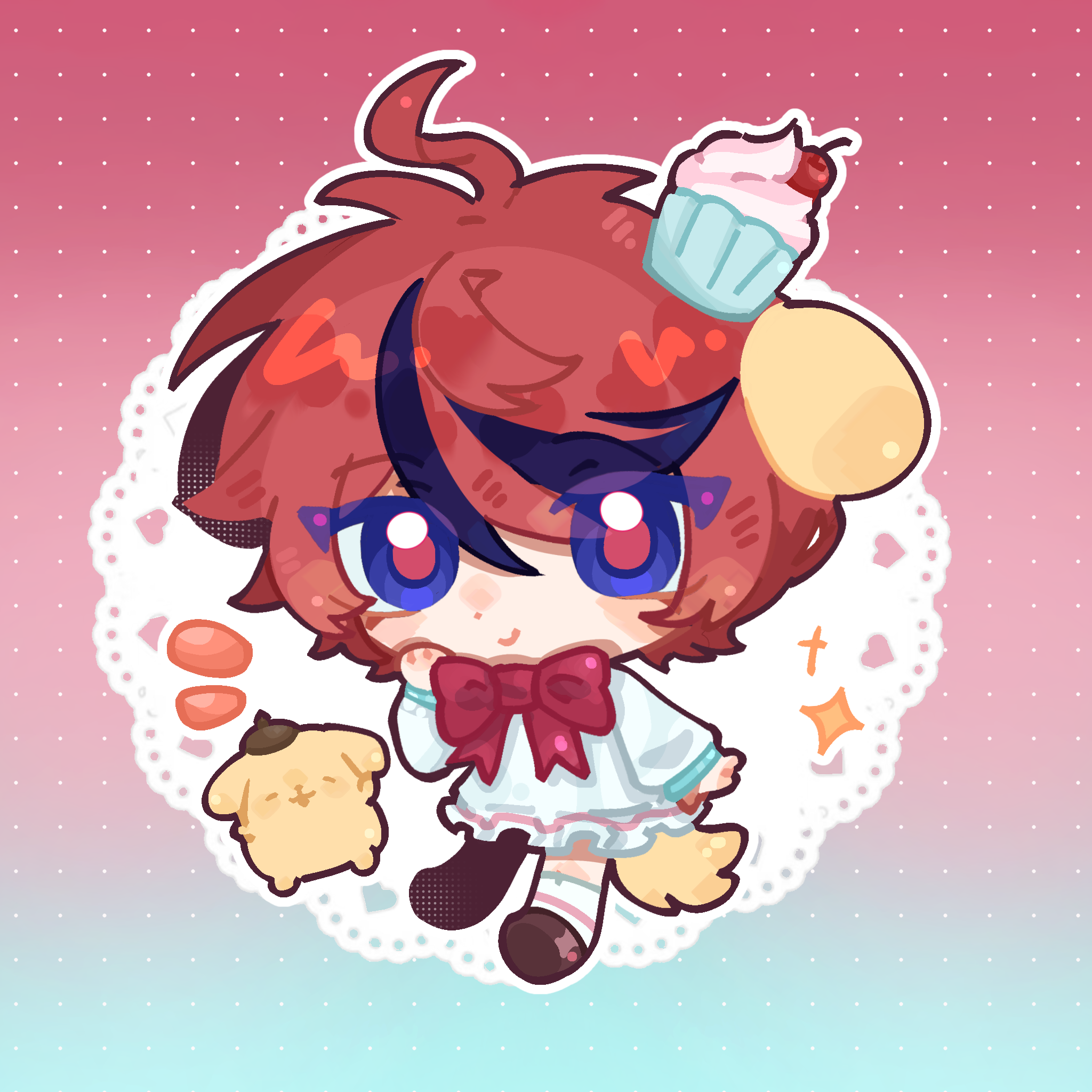 1boyahogealternate costumeanimal earsblue eyesbowbowtiebrown shoescherrychibichibi onlyclosed mouthcrossdressingcrossdressing (mtf)crossovercupcakedog boydog earsdog taildoilydresseyes visible through hairfoodfood on headfrilled dressfrillsfruitgradient backgroundhair between eyeshand on own cheekhand on own facekemonomimi modemale focusmulticolored hairobject on headoutlinepurple eyesred bowred bowtiered hairred pupilsshoesshort hairsmilesolosparklestreaked hairtailthighhighstraptwo-tone hairwhite dresswhite outlinewhite thighhighsyouyu fanqie zai nongcun
