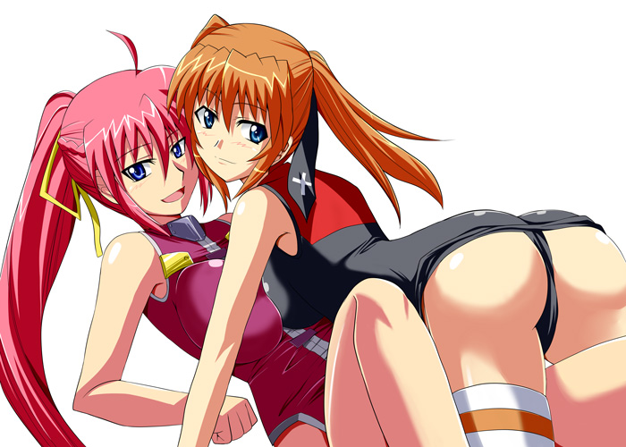00s2girlsassblue eyeslong hairmultiple girlsorange hairpink hairponytailshort hairthighhighstwintailsyuri