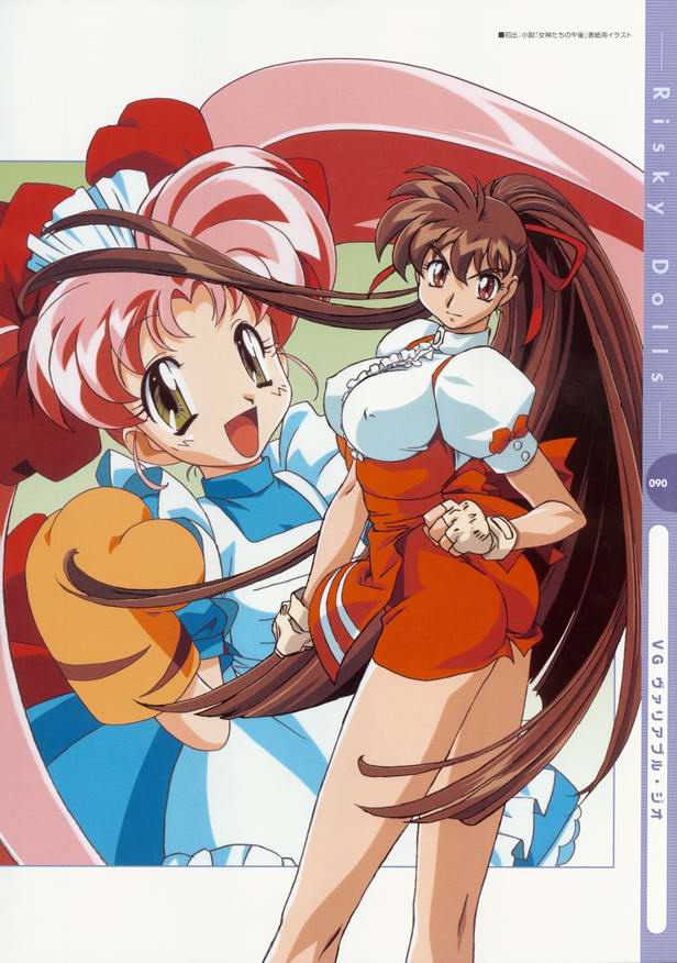 1990s (style)2girlsage differenceanimal handsapronassbreastsbrown eyesbrown haircovered erect nipplesdressfingerless glovesgloveshair ribbonlarge breastslegslong hairlooking backmultiple girlsorange skirtpaw glovespink hairponytailretro artstyleribbonshort dressskirtturtlenecktwintailsvery long hairwaitressyellow eyes