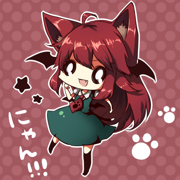 1girlanimal earscat earscat girlcat tailchibifangfemale focusfull bodyhead wingslong hairred hairsolostandingtailwings