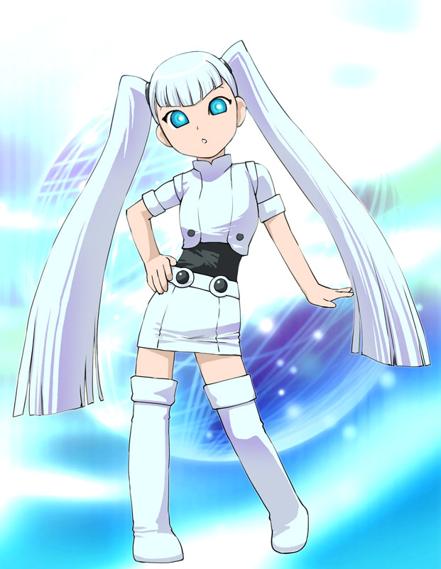 kei (pixiv47157), black rock shooter (character), hatsune miku, black rock shooter, vocaloid, bad id, bad pixiv id, 10s, 1girl, black hair, blue eyes, blue theme, female focus, midriff, monochrome, navel, solo, spot color, twintails