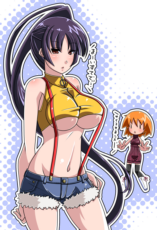 2girlsblushbreastscosplaycostume switchdenimdenim shortsdressgym leaderhalftonehalftone backgroundlarge breastslong hairmidriffmisty (pokemon) (cosplay)multiple girlsnavelorange hairponytailpurple hairred eyessabrina (pokemon) (cosplay)shoesshort hairshort shortsshortssuspendersthighhighsunderboobvery long hairworriedzettai ryouiki