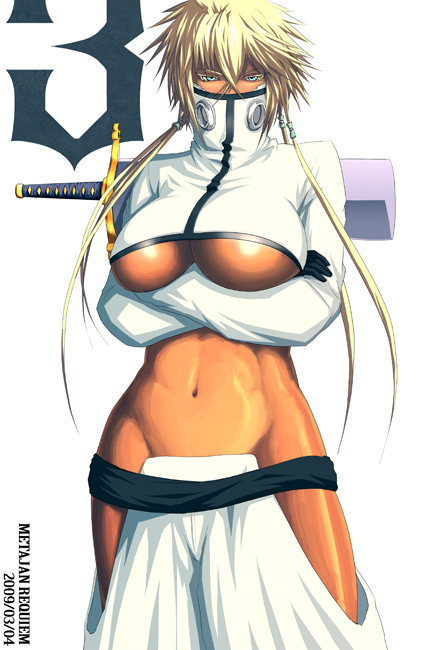 00s1girlabsarrancarblonde hairbreastscrossed armsdark skindark-skinned femalefemale focuslarge breastsnavelnumber tattoorevealing clothessoloswordtattoounderboobweapon