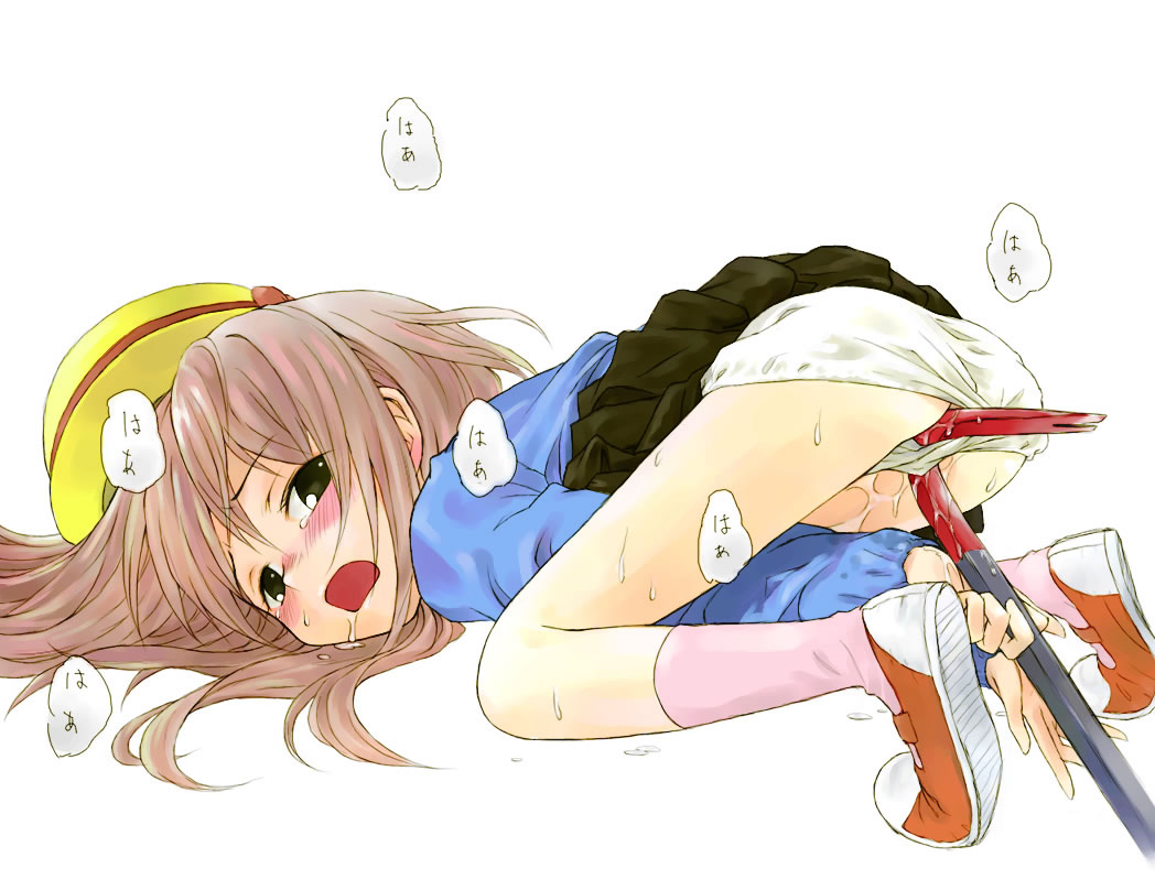 rehu (astd5787), iori (blue archive), blue archive, absurdres, highres, 1girl, armband, black gloves, black skirt, black tail, blush, breasts, closed eyes, collared shirt, cowboy shot, cropped legs, dark-skinned female, dark skin, demon tail, gloves, grey hair, grey halo, hair ornament, hair over one eye, hair ribbon, halo, hand on own hip, index finger raised, long hair, long sleeves, medium breasts, open mouth, pointy ears, ribbon, shirt, simple background, skirt, solo, standing, sweatdrop, tail, very long hair, white background, white shirt