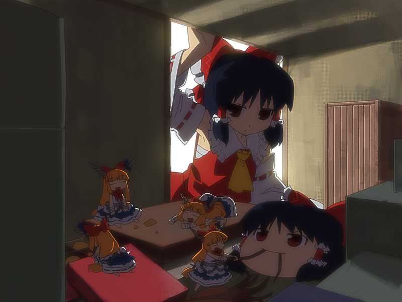 5girls6+girlsblack hairclonefemale focushair ribbonhornsindoorsmini personminigirlmultiple girlsorange hairred eyesribbonyukkuri shiteitte ne