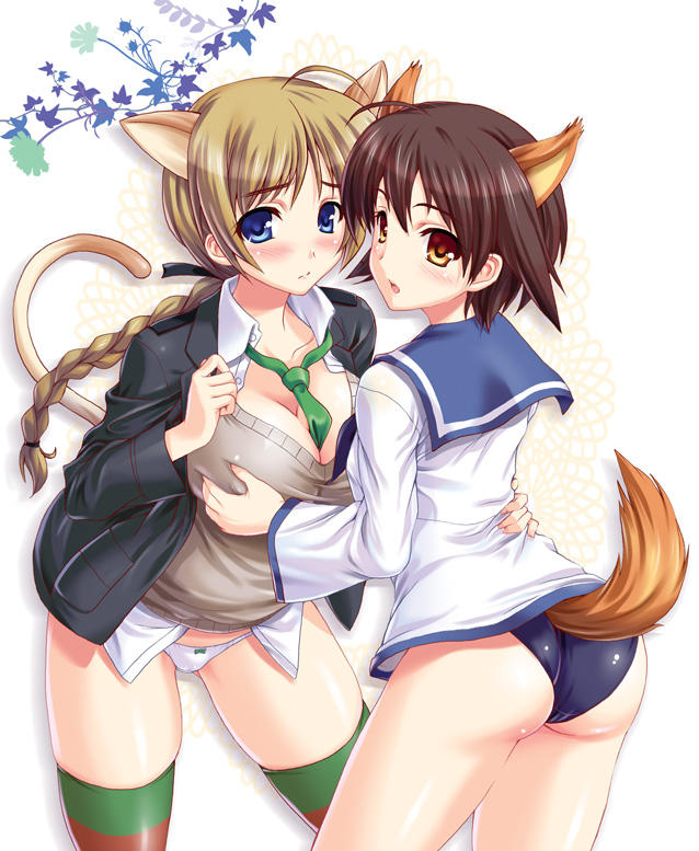 00s2girlsanimal earsassbetween breastsblue eyesblushbowbow pantiesbraidbreastsbreasts squeezed togetherbrown eyesbrown haircat earscat tailcleavagedog earsdog taillarge breastsmultiple girlsnecktiepantiesschool uniformserafukushort hairsmall breastsstriped clothesstriped thighhighstailthighhighsunderwearyuri