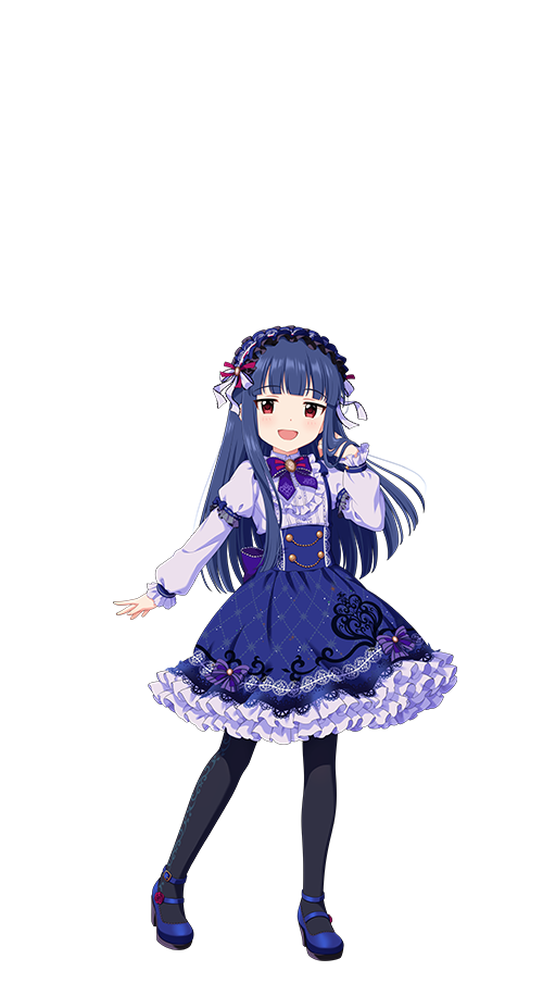 1girlblue hairbuttonsfrilled skirtfrillsfull bodyheaddresshigh heelsidol clothesopen mouthpantyhosepuffy sleevesred eyesskirtsolotransparent background