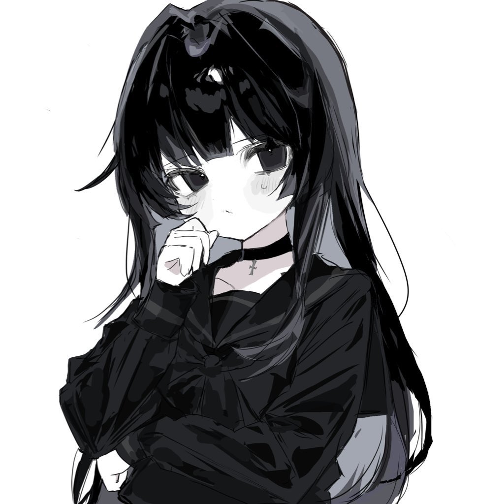 habsida (habsida hpy), awa subaru, girls band cry, absurdres, commentary request, highres, 1girl, ahoge, alternate hair length, alternate hairstyle, black hair, blue bow, blue bowtie, blush, bow, bowtie, breasts, collared shirt, diagonal-striped bow, diagonal-striped bowtie, diagonal-striped clothes, dress shirt, hair ribbon, medium breasts, open mouth, parted bangs, purple eyes, ribbon, shirt, short hair, simple background, solo, striped bow, striped bowtie, striped clothes, teeth, upper body, white background, white ribbon, white shirt