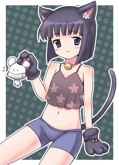 1girlanimal earsbellbike shortscat earscat tailchokercollarfemale focusmidriffneck bellsmilesolotailyuko machi