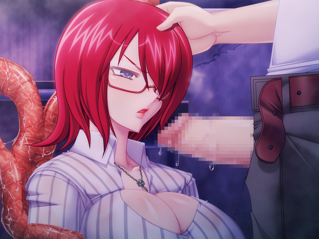 blue eyesbreastscleavageerectionfemaleFlag for Deletionglasseshairhair over one eyehand on headlarge breastsmalepenisred hairshort hairstraighttentacle