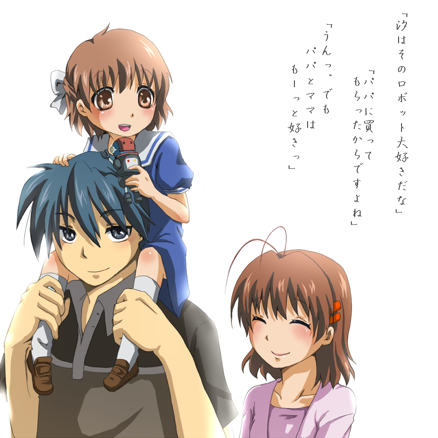 eenightlamp, evil neuro-sama, neuro-sama, highres, 2girls, ahoge, arm up, artist name, badge, black cardigan, black skirt, black thighhighs, blue eyes, blue skirt, bow, bowtie, breasts, broken heart, broken heart hair ornament, brown hair, button badge, cardigan, cardigan around waist, character name, cleavage, clothes around waist, collared shirt, cowboy shot, dress shirt, ear piercing, facial mark, fang, flat chest, from side, hair between eyes, hair bow, hair ornament, heart, kosei high school uniform, long hair, long sleeves, looking at viewer, multiple girls, open mouth, piercing, ponytail, red bow, red bowtie, red eyes, school uniform, shirt, siblings, simple background, sisters, skirt, skull hair ornament, thighhighs, twins, vedal ai, virtual youtuber, white background, white shirt