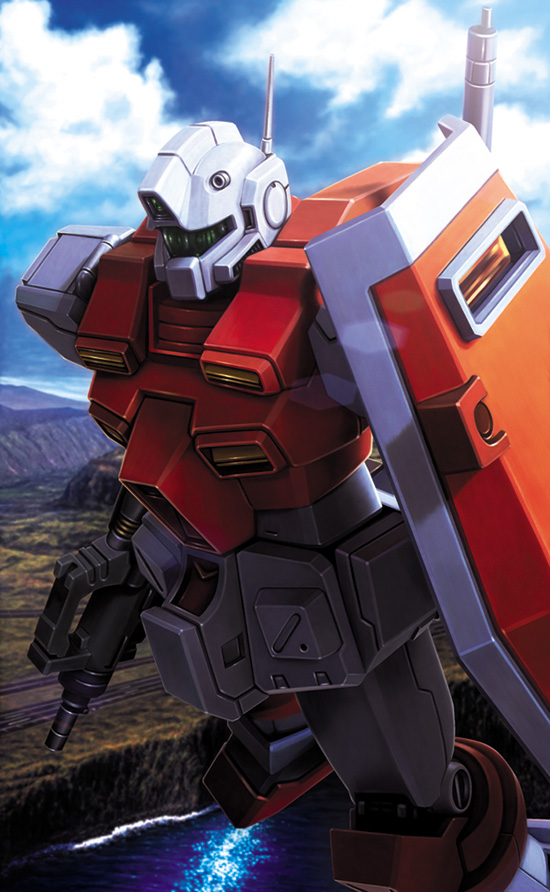 1990s (style)clouddaygm poweredgunmachine gunmechano humansoutdoorsretro artstyleriverrobotshieldskysoloweapon