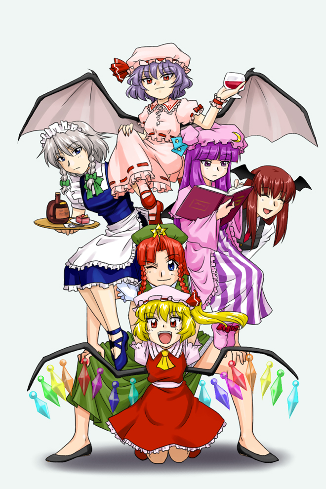 freefgp, original, absurdres, highres, 1girl, :p, arm support, baggy pants, black shirt, blue fire, blue pants, breasts, brown hair, chain, cleavage cutout, clothing cutout, colored skin, colored tongue, cropped shoulders, demon girl, demon horns, demon tail, denim, double-parted bangs, ear piercing, eyewear on head, fingernails, fire, fireball, from behind, full body, green-tinted eyewear, green nails, green shoes, green tongue, grey background, grin, hair between eyes, hair bun, hand in pocket, heart cutout, horns, jacket, jeans, large breasts, light blush, long pointy ears, long sleeves, looking at viewer, looking back, multiple views, nail polish, off shoulder, open clothes, open jacket, padded jacket, pants, piercing, pointy ears, puffy long sleeves, puffy sleeves, red jacket, red skin, round eyewear, sharp teeth, shirt, shoes, sideways mouth, single hair bun, single horn, single sidelock, sitting, sleeveless, sleeveless shirt, smile, sneakers, standing, tail, teeth, tinted eyewear, tongue, tongue out, two-sided fabric, two-sided jacket, two-tone background, v, yellow-framed eyewear, yellow background, yellow eyes