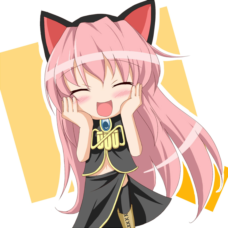 1boyanimal earsblushbootscat earschibiclosed eyeshairbandlong hairmidriffnavelparodypink hairskirtsmilesolothighhighs