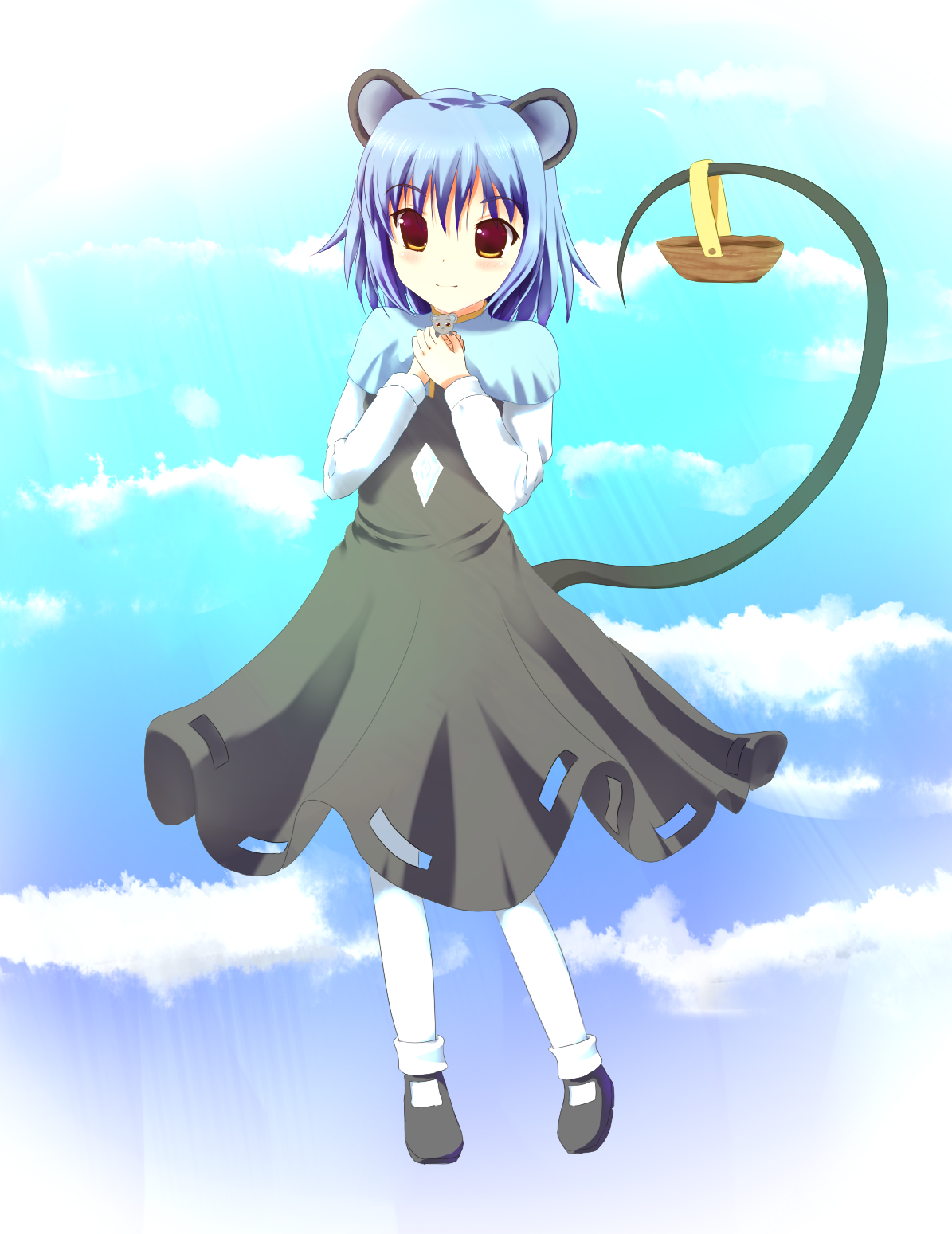 1girlanimal earsbasketblue hairclouddayfemale focusfull bodymouse (animal)mouse earsmouse tailoutdoorsshort hairskysolotail