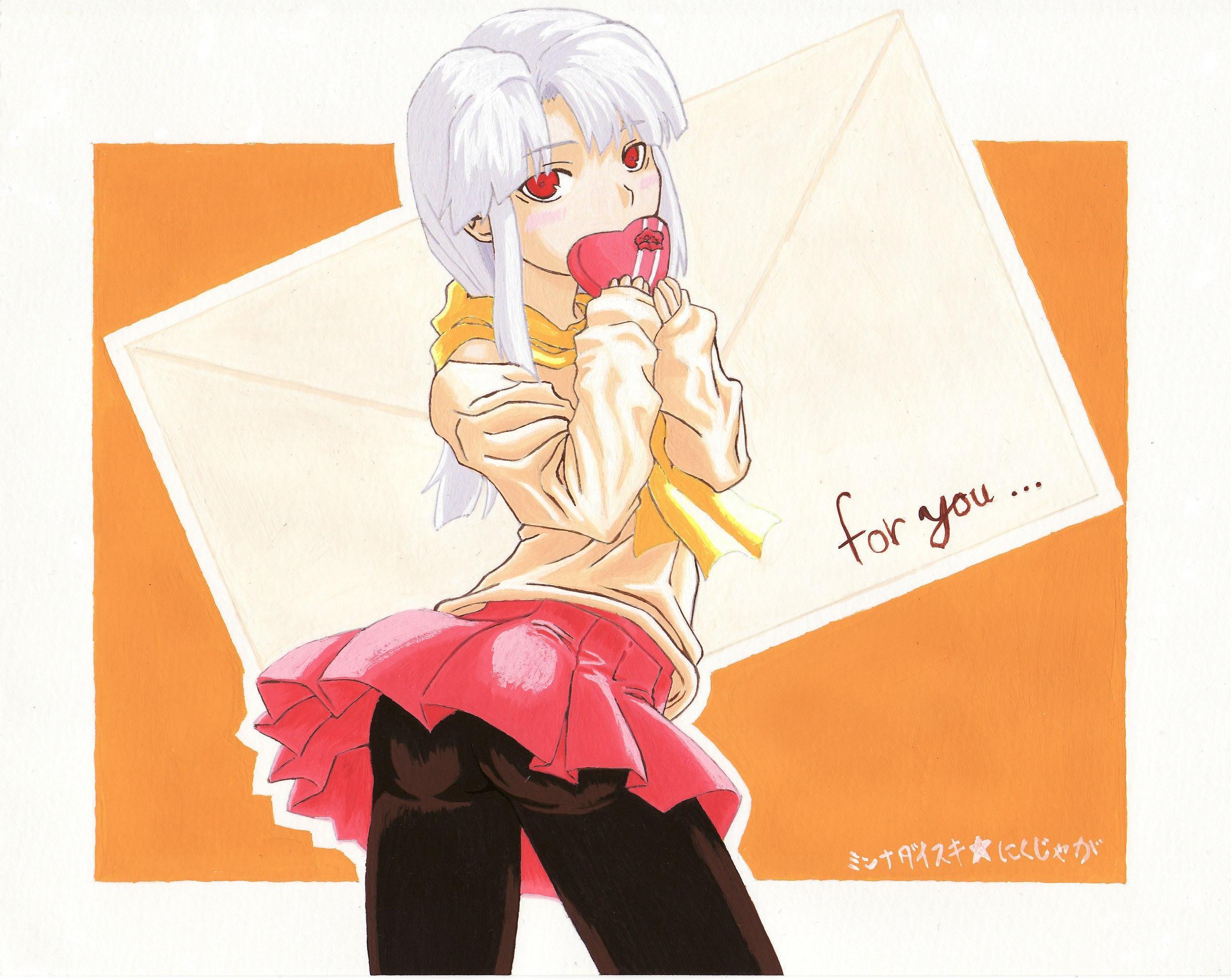 1girlasscandyfemale focusfoodletterlooking backpantiespanties under pantyhosepantyhosered eyesskirtsolounderwearupskirtvalentinewhite hair