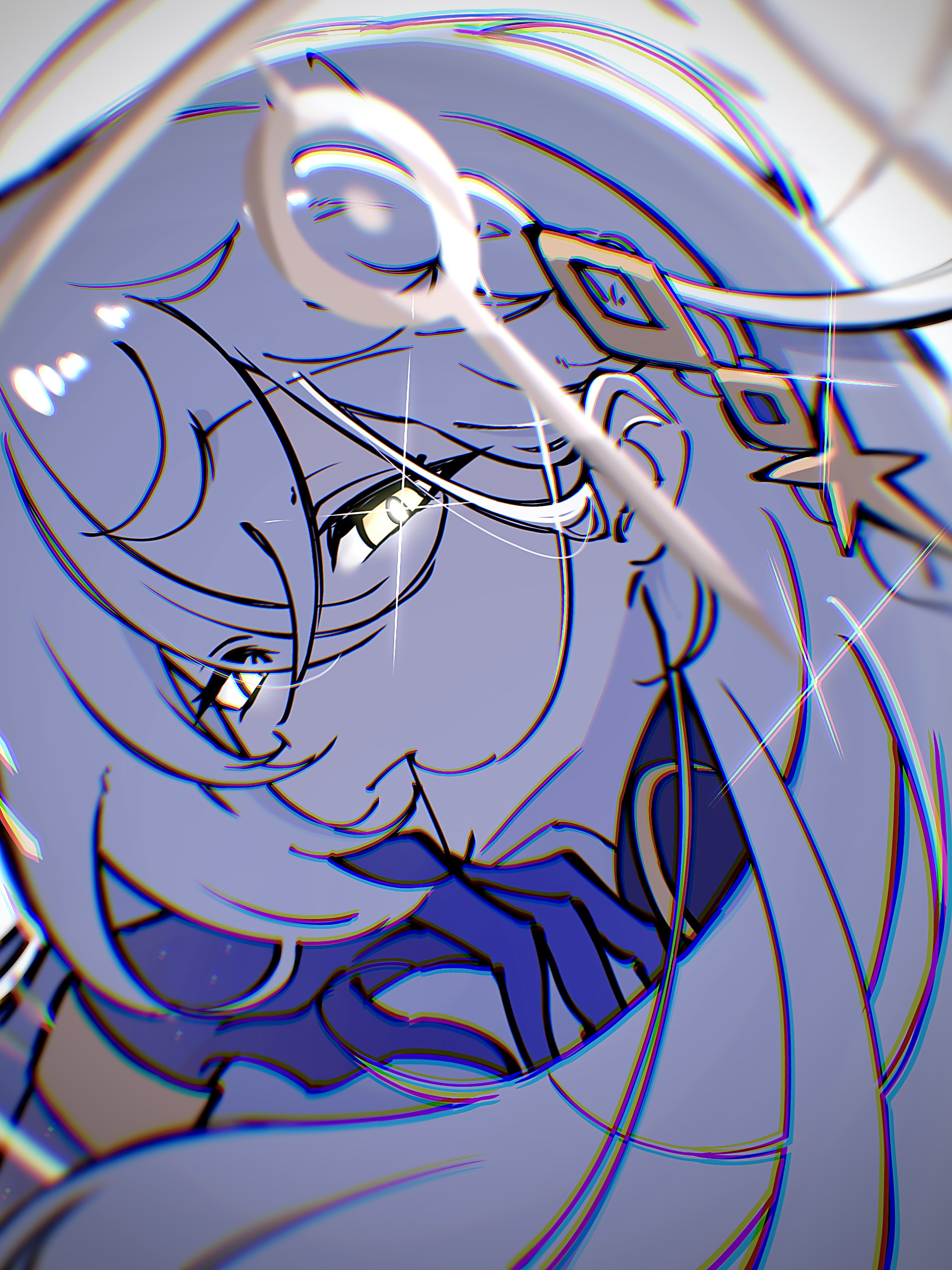 shima-shuu, behelit, isayama yomi, berserk, ga-rei, ga-rei zero, highres, 00s, 1990s (style), 1girl, bandages, barefoot, black hair, blunt bangs, breasts, female focus, hime cut, long hair, lying, nipples, nude, purple eyes, retro artstyle, solo, tears
