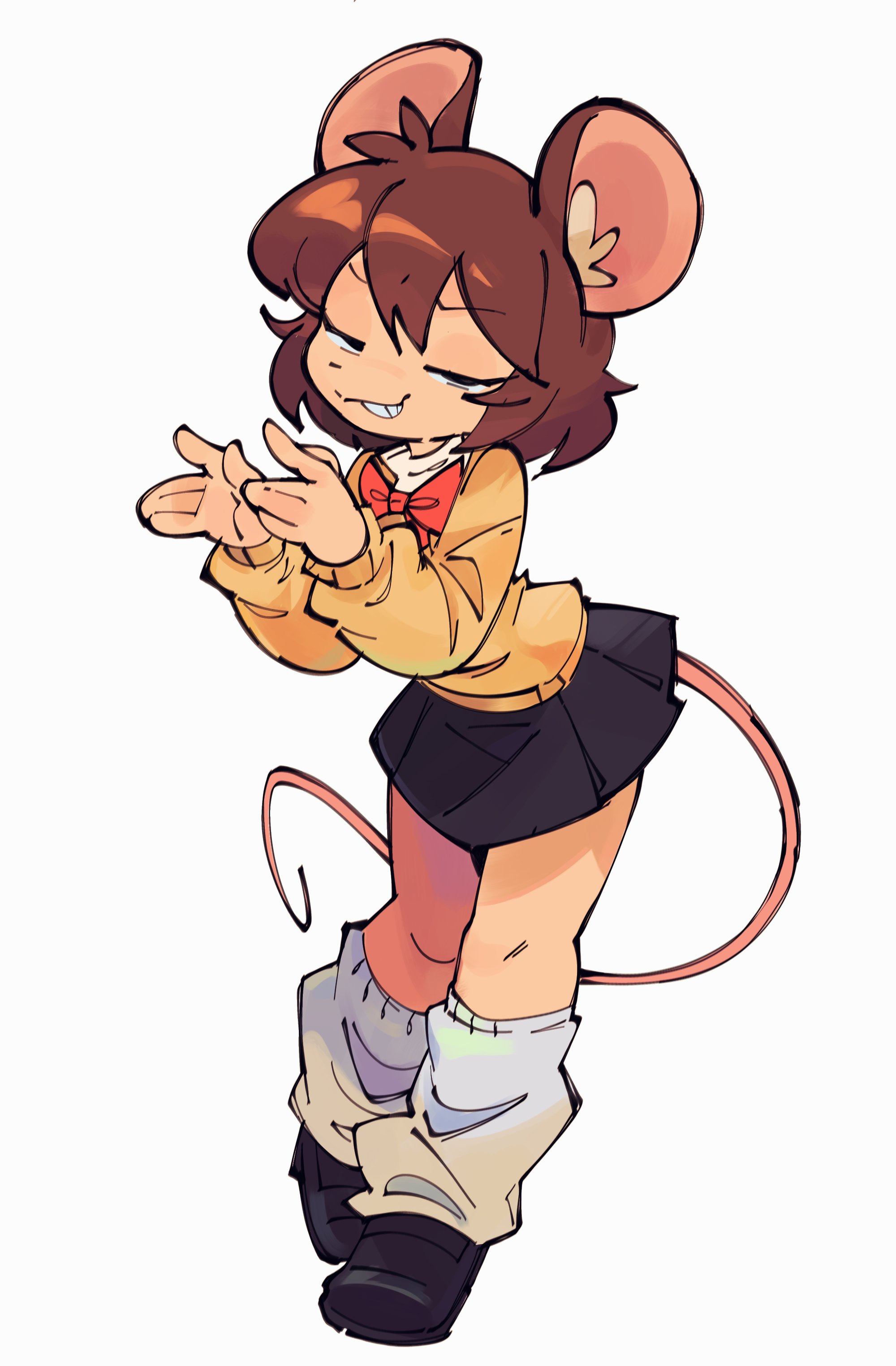 1girlanimal earsbowbrown hairchani chantiyiidemon tailfull bodyloose socksmouse earsmouse tailpersonificationschool uniformshort hairskirtsmilesockssolotail