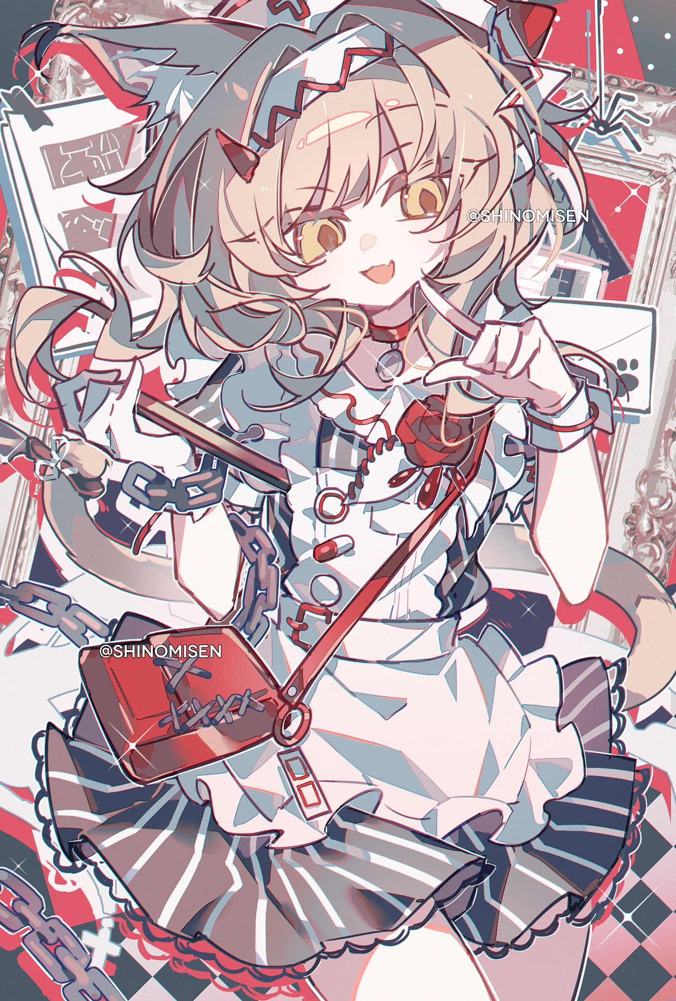 1girlanimal ear fluffanimal earsapronblack dressbrown haircat earscat girlcat tailchainclipboardcowboy shotdressfrilled apronfrillsgradient backgroundgrey backgroundhaze (the nursing home creepshow) (arknights)holdingholding clipboardletterlong hairlooking to the sideopen mouthpillpointingpointing at selfpuffy short sleevespuffy sleevesred backgroundred bagshort sleevessmilesolostriped clothesstriped dresstailvertical-striped clothesvertical-striped dresswhite apronwhite wrist cuffswrist cuffsyellow eyes