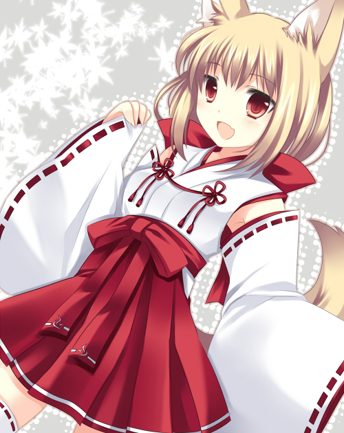 1girladapted uniformanimal earsblonde hairdetached sleevesfemale focusfox earsjapanese clothesmikored eyessolotail