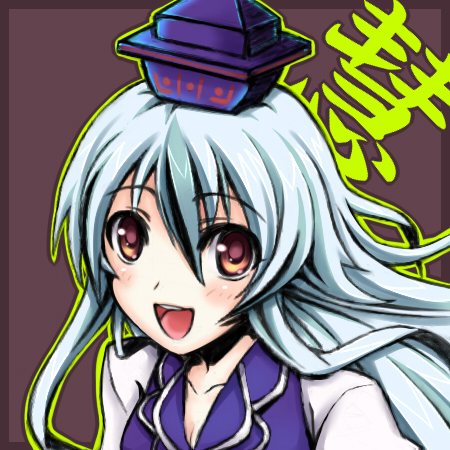 1girlblue dressblue hairblushbrown backgroundcollarbonedressfemale focushatlooking at vieweropen mouthsimple backgroundsolotaremetate eboshi