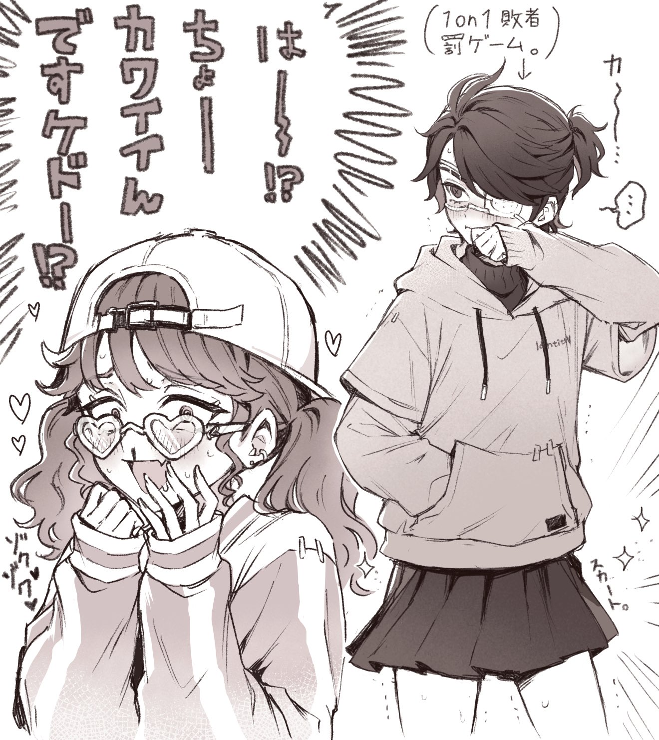 :d1boy1girlandrogynousbackwards hatblack skirtbloodblushcowboy shotcross-shaped pupilscrossdressingcrossdressing (mtf)douka shiteruudownturned eyeseyepatchfangfingernailshatheartheart-shaped eyewearlayered sleeveslong fingernailslong sleevesmonochromenosebleedofficial alternate costumeopen mouthpleated skirtponytailshort over long sleevesshort ponytailshort sleevesshort twintailsskin fangskirtsleeves past wristssmilesweatsymbol-shaped pupilstremblingturtlenecktwintailswavy hair