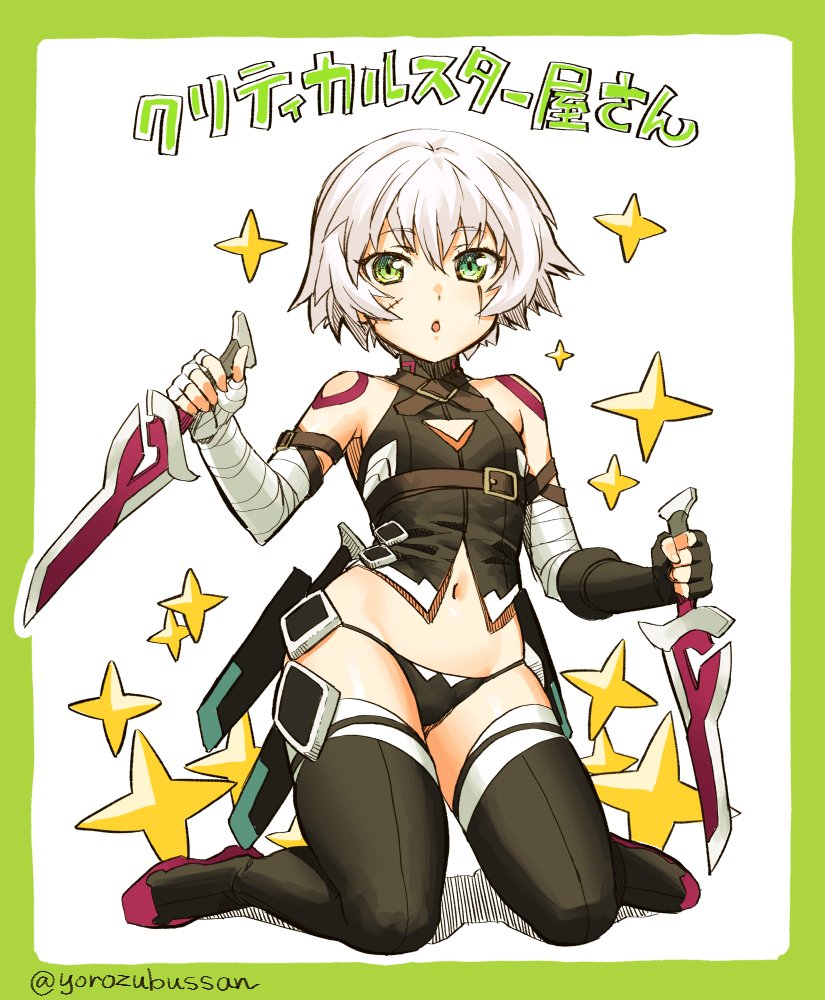 minarai zouhyou, kagamine rin, vocaloid, 1girl, dark-skinned female, dark skin, detached sleeves, female focus, gyaru, hair ornament, hairclip, kogal, solo