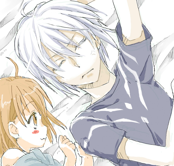 alakoala, z1 leberecht maass (kancolle), kantai collection, commentary request, translation request, 1girl, black neckerchief, blue dress, blue eyes, blue hat, blush stickers, character name, circle cut, dress, food, hair between eyes, hat, holding, holding food, holding popsicle, long sleeves, neckerchief, popsicle, sailor dress, shirt, short hair, simple background, smile, solo, upper body, white background, white hair, white shirt