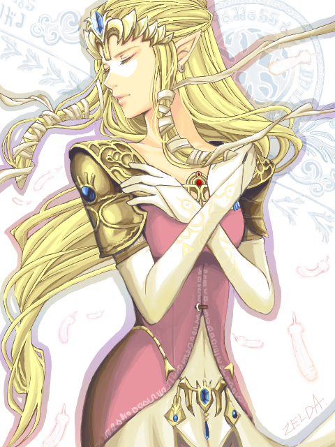 1girlbandagesblonde hairclosed eyesearringselbow gloveselffemale focusfrownglovesjewelrylong hairpointy earssolotiara