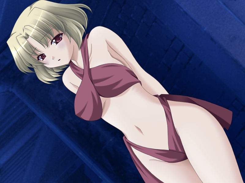 1girlbare shouldersbikiniblonde haircollarbonedutch anglefemale focusred eyesshort hairsoloswimsuit