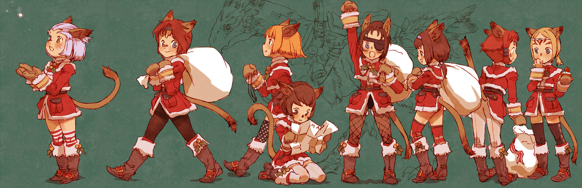 00s6+girlsanimal earsbagbootscat earscat tailchristmaseyepatchglovesmultiple girlssacksanta costumetail