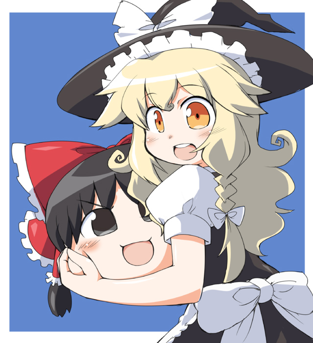 :d1girlapronblonde hairblushdisembodied headfemale focusfrom behindhatlooking at viewerlooking backopen mouthpuffy short sleevespuffy sleevesshort sleevessmilesolotaremeupper bodywaist apronwitch hatyukkuri shiteitte ne