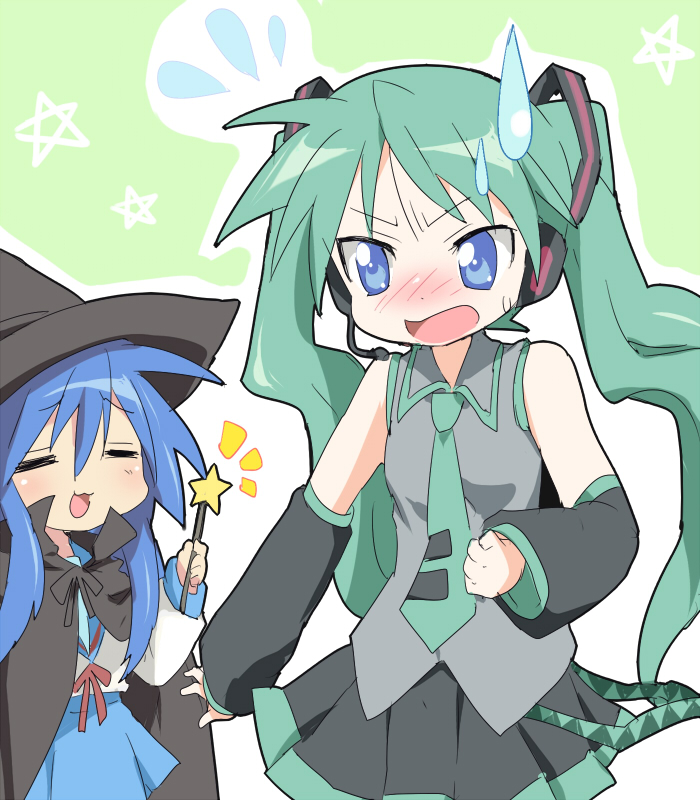 animal ears, barefoot, blue eyes, blue hair, cat ears, fang, fish, green eyes, green hair, long hair, mouse ears, mousegirl, panties, side-tie panties, underwear, water, wet