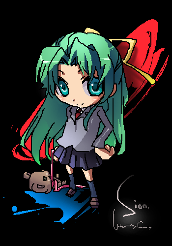 00s1girlblushfemale focusgreen eyesgreen hairlong hairmatching hair/eyesribbonschool uniformsmilesolostuffed animalstuffed toyteddy bear