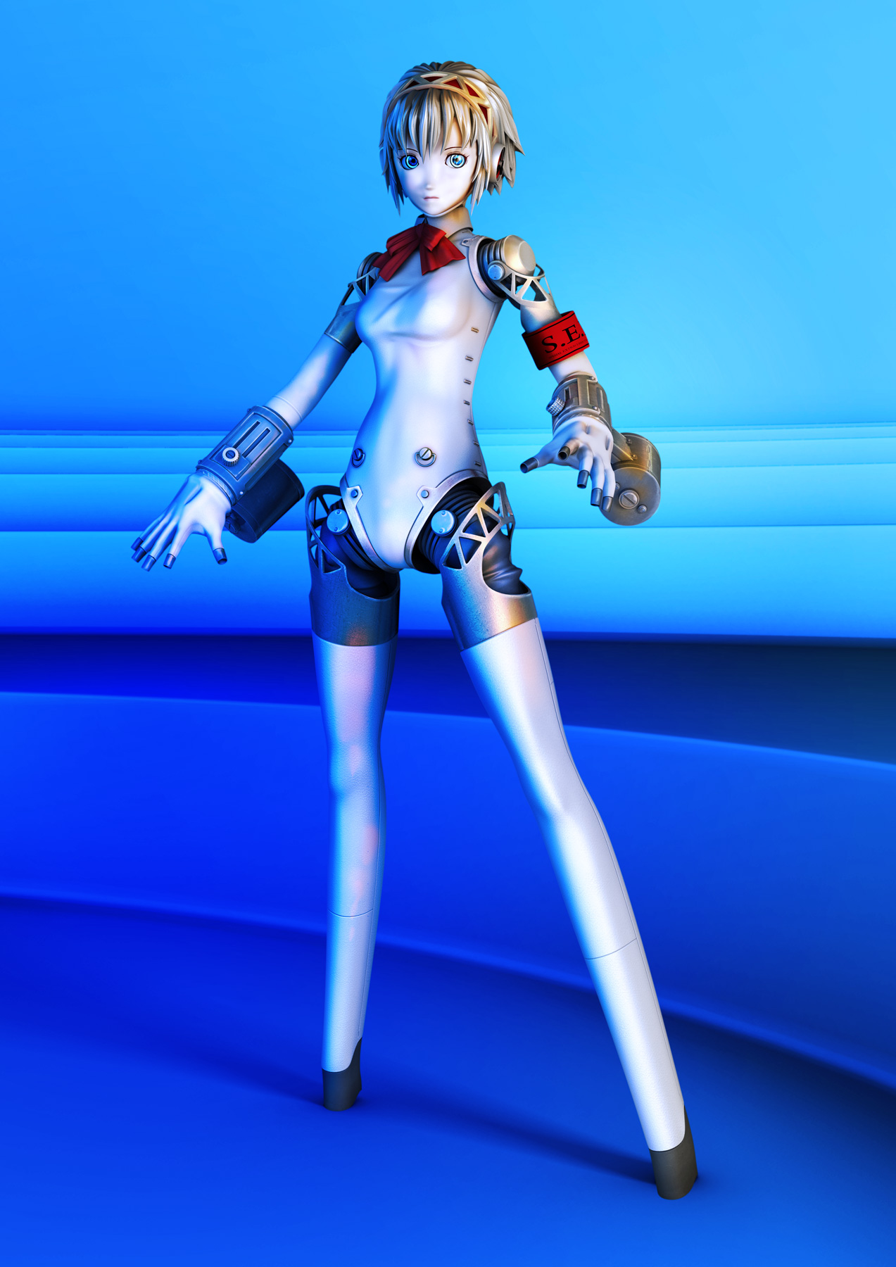 1girl3dandroidblonde hairblue eyesfemale focusfull bodyhairbandhovesribbonsolospread legsstanding