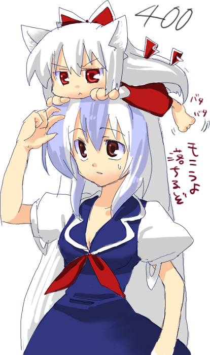 2girlsanimal earsbarefootcat earscat girlchibifemale focuslyingmultiple girlssimple backgroundstandingwhite background