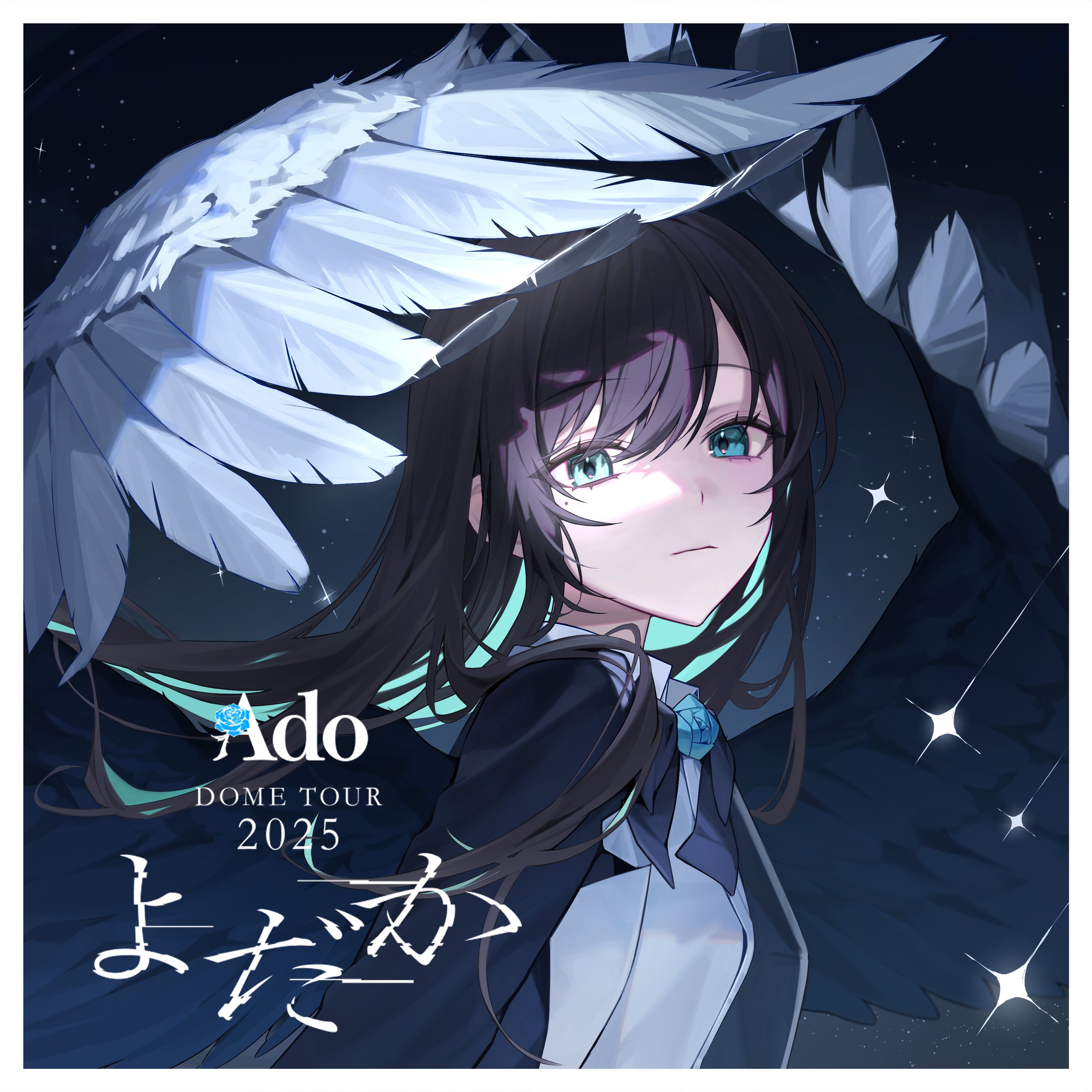 wn (wani-noko), blaze (arknights), blaze the igniting spark (arknights), infection monitor (arknights), arknights, commentary, commentary request, english commentary, highres, mixed-language commentary, 1girl, :d, animal ear fluff, animal ears, black hair, blue eyes, breasts, cleavage, crossed bangs, falling petals, hair between eyes, light blush, long hair, looking at viewer, medium breasts, open mouth, petals, smile, solo, twitter username, upper body, watermark, waving, white background