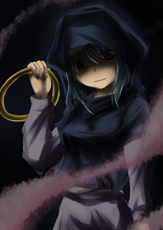 1girlarm at sideblack backgroundblack eyesblue hairbreastscowboy shotfemale focushair between eyesholdinghoodhood uplong sleeveslooking at viewermedium breastsparted lipsshaded faceshort hairsimple backgroundsketchsmilesolostandingupper body