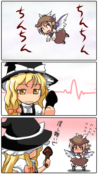 :d1boy2girls3komablonde hairblushbowbrown dresschibiclosed mouthcomicdressembarrassedexpressionlessfemale focusflyingflying sweatdropshair bowhathat bowmultiple girlsmushroomopen mouthpink hairsexually suggestivesmilewingswitch hat