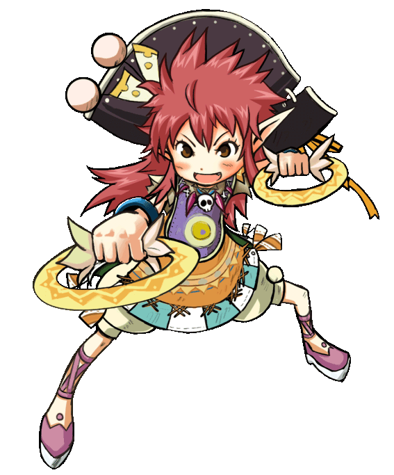 1girlandrogynousblushbootsbrown hairdual wieldingfemale focusfighting stancefull bodyholdingholding weaponjewelryloaferslong hairlooking at vieweropen mouthpointy earsred hairringshoesshort hairsidelockssimple backgroundsmilesolospiked hairspread legsstandingtransparent backgroundweaponwhite background