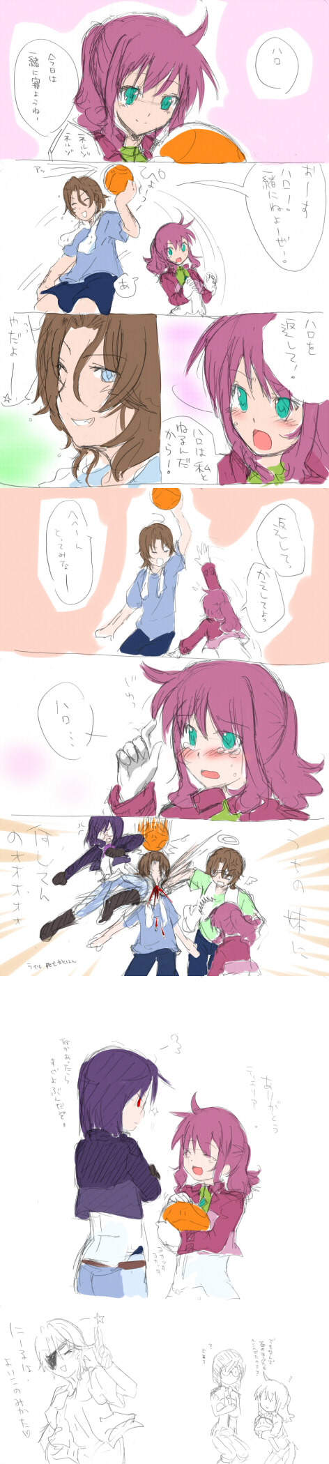 imo works, aisaka taiga, kushieda minori, toradora!, 00s, brown eyes, brown hair, cat, long hair, purple eyes, red hair, school uniform, serafuku, short hair