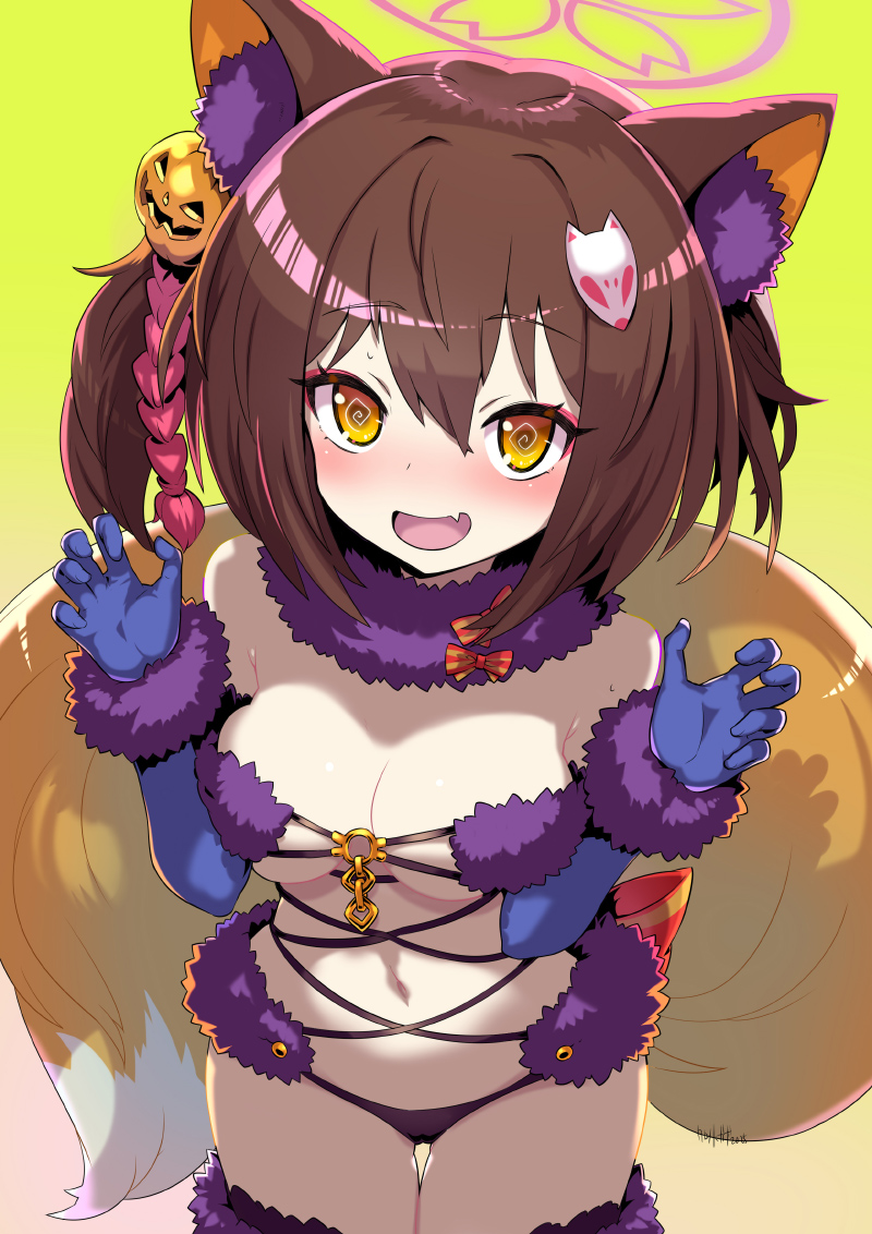 1boy1girlanimal ear fluffanimal earsblue glovesblushbreastsbrown hairclaw posecosplayelbow gloveseyeshadowfangfox earsfox girlfox hair ornamentfox tailfur bikinifur collarfur trimfur-trimmed glovesfur-trimmed thighhighsgloveshalloween costumehalolooking at viewermakeupmash kyrielight (dangerous beast) (cosplay)medium breastso-ringpink halorevealing clothesskin fangsolotailthighhighsyellow eyes