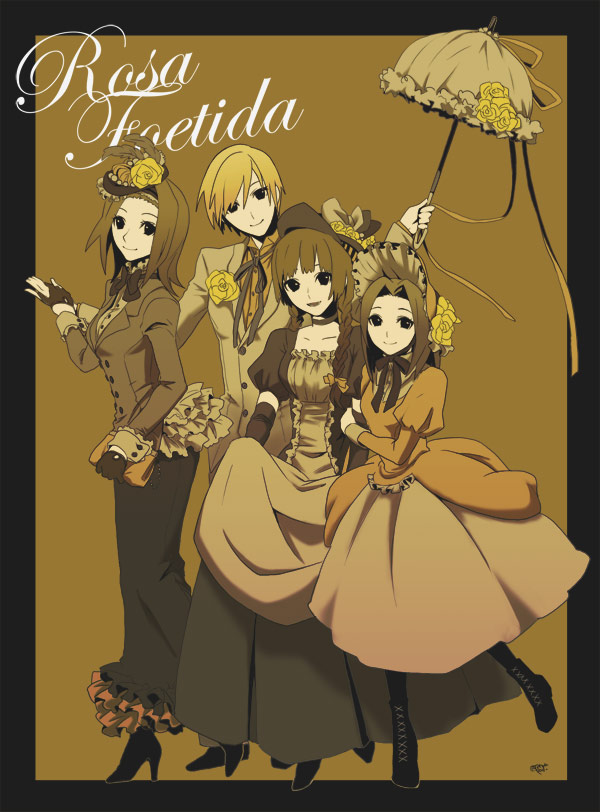 mysteryctu, bangboo (zenless zone zero), magus (zenless zone zero), orphie magnusson, wise (soaring crane) (zenless zone zero), wise (zenless zone zero), zenless zone zero, commission, highres, pixiv commission, 1boy, 2girls, black gloves, black hat, blush, breasts, censored, cum, gloves, goat horns, green eyes, hat, horns, large breasts, mosaic censoring, multiple girls, nipples, orange hair, pointy ears, sex, signature, straddling, tail, twintails, upright straddle, yellow gloves